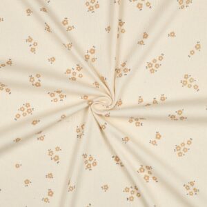 Organische ribtricot bloemen naturel