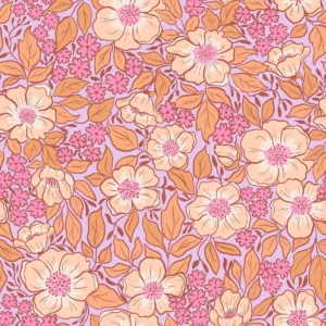 Coated jersey blooms garden lilac peach – Family Fabrics