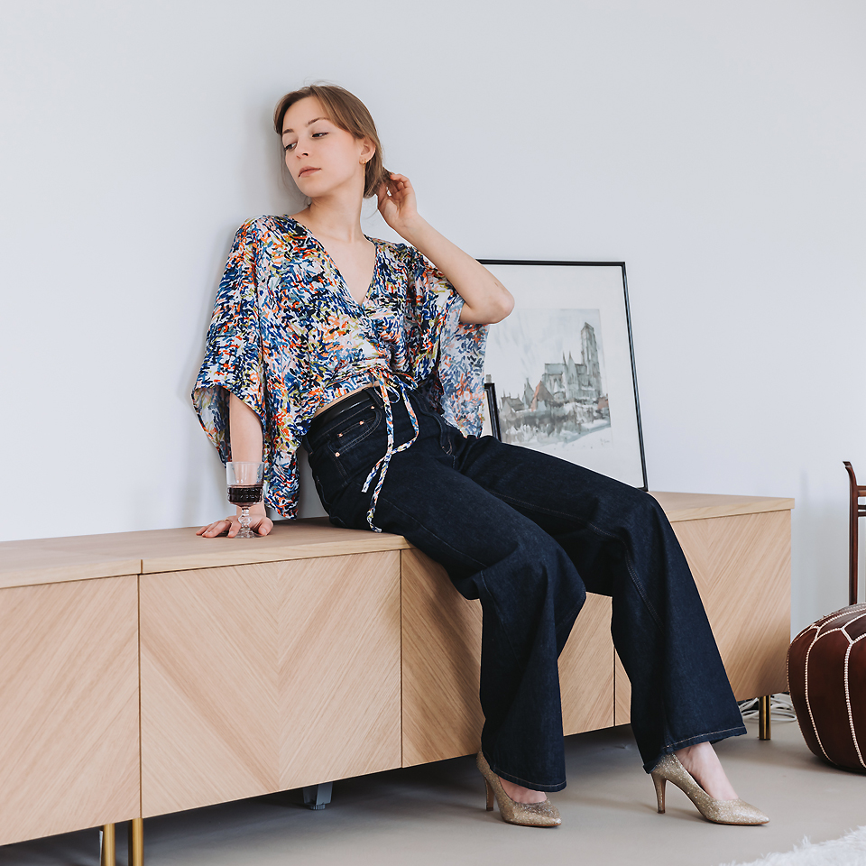 Een 100% vegan stof; nooit geweten dat het kan, maar het kan!! Viscose, maar dan de duurzame versie. Het is licht, glanzend (mede natuurlijk door de satijnen binding) en ademend. De stof ziet er super mooi, glad en luxe uit en de kleuren zijn helder en prachtig – ook na 100x wassen! 💚 Je kunt er de mooiste jurken, blouses, broeken en rokken van maken.