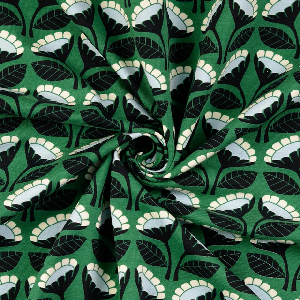 French terry is super veelzijdig! Het is net als tricot een gebreide stof, gemaakt van een mix van katoen en elastan, waardoor het dus rekbaar is. Het is wat dikker dan tricot, maar dunner dan sweatstof – het zit er dus precies tussenin. Het wordt daarom ook wel zomersweat genoemd; het is echt de perfecte stof om het hele jaar door te gebruiken 🤩! French terry herken je eenvoudig aan de lusjes aan de achterkant van de stof. Daardoor is het lekker warm, maar toch ademend. Je maakt er gegarandeerd de mooiste shirts, truien, broeken, jurken en vesten van!