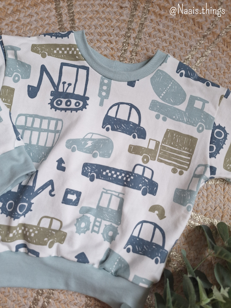 Omdat french terry wat dikker is, is het niet zo rekbaar als tricot en is een boordstof aan te raden. Mocht je geen boordstof kunnen of willen gebruiken en gebruik je de stof zelf als boord, neem voor de boorden dan een omtrek van 95%.