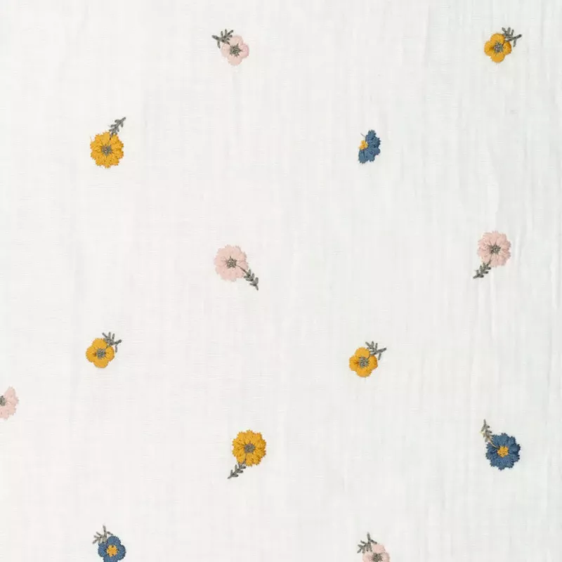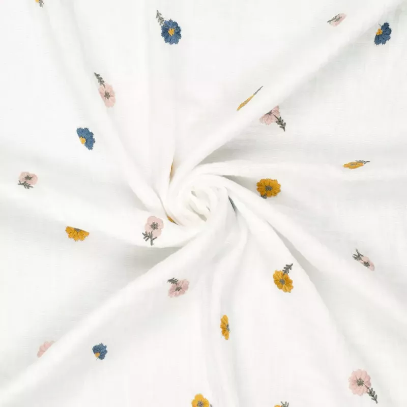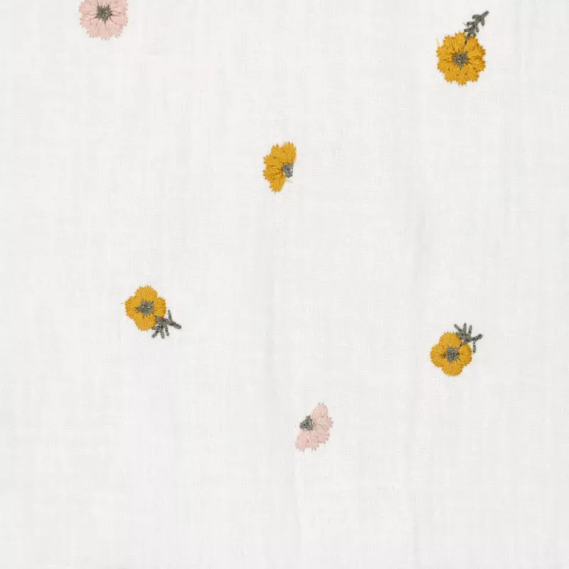 Het leuke aan hydrofiel broderie is dat er een geborduurd detail in de stof te zien is, wat het een extra speels en lief effect geeft.
