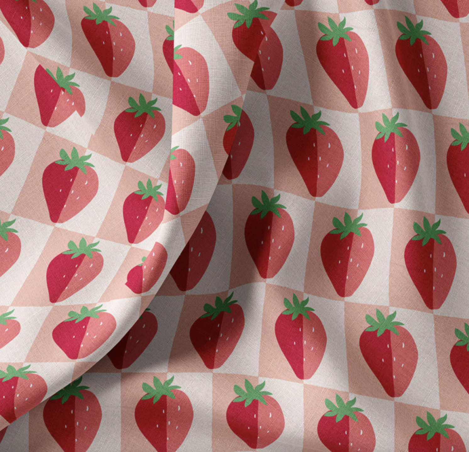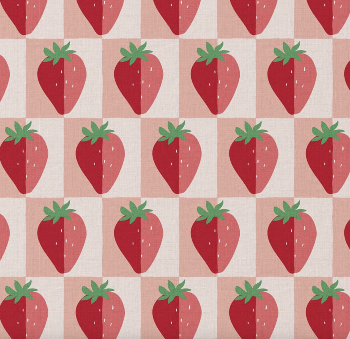 Katoen poplin aardbeien geblokt