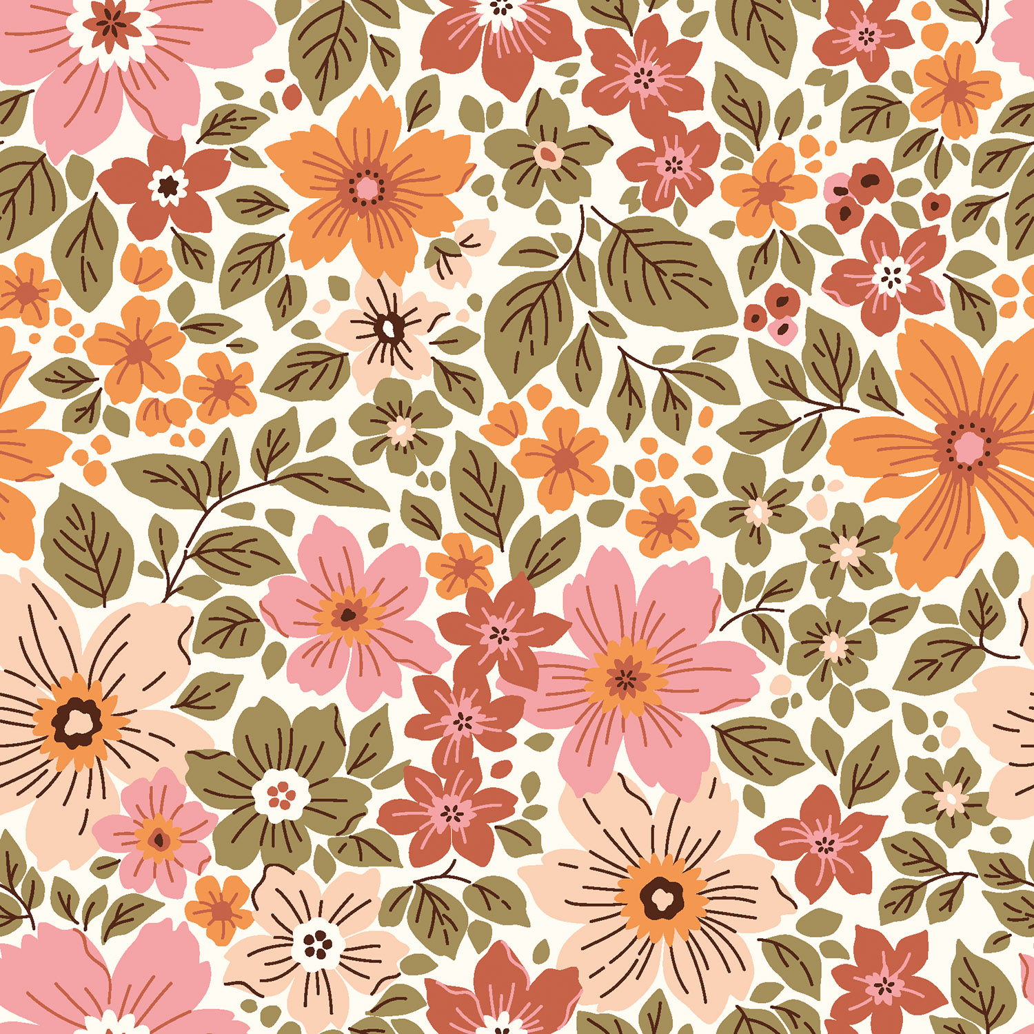 Katoen poplin vintage bloemen groen